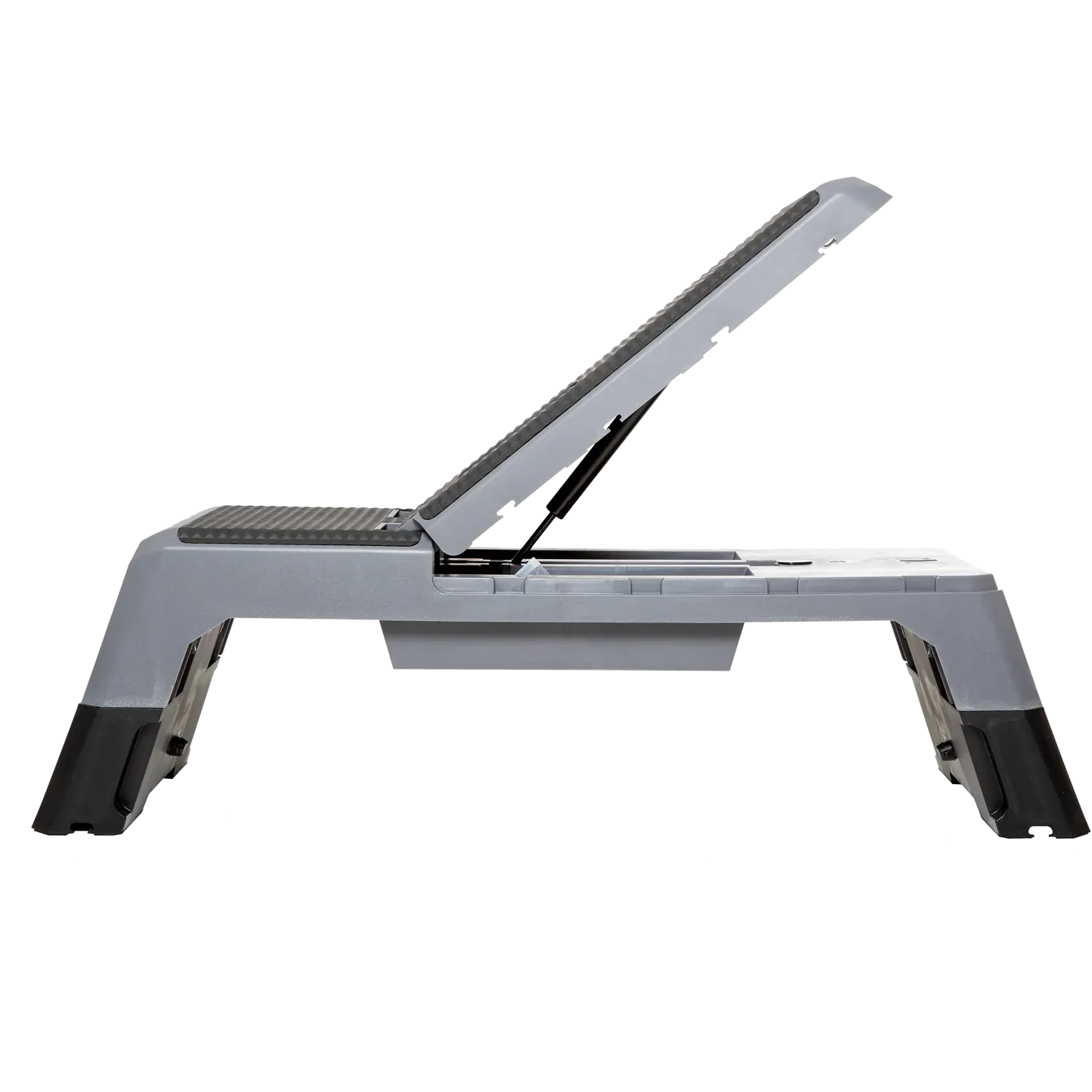 Steps Sportfitness ideal para entrenamiento funcional y cardiovascular. Los beneficios del Steps Aeróbicos ajustable incluyen quema de calorías y tonificación muscular, especialmente glúteos y piernas.